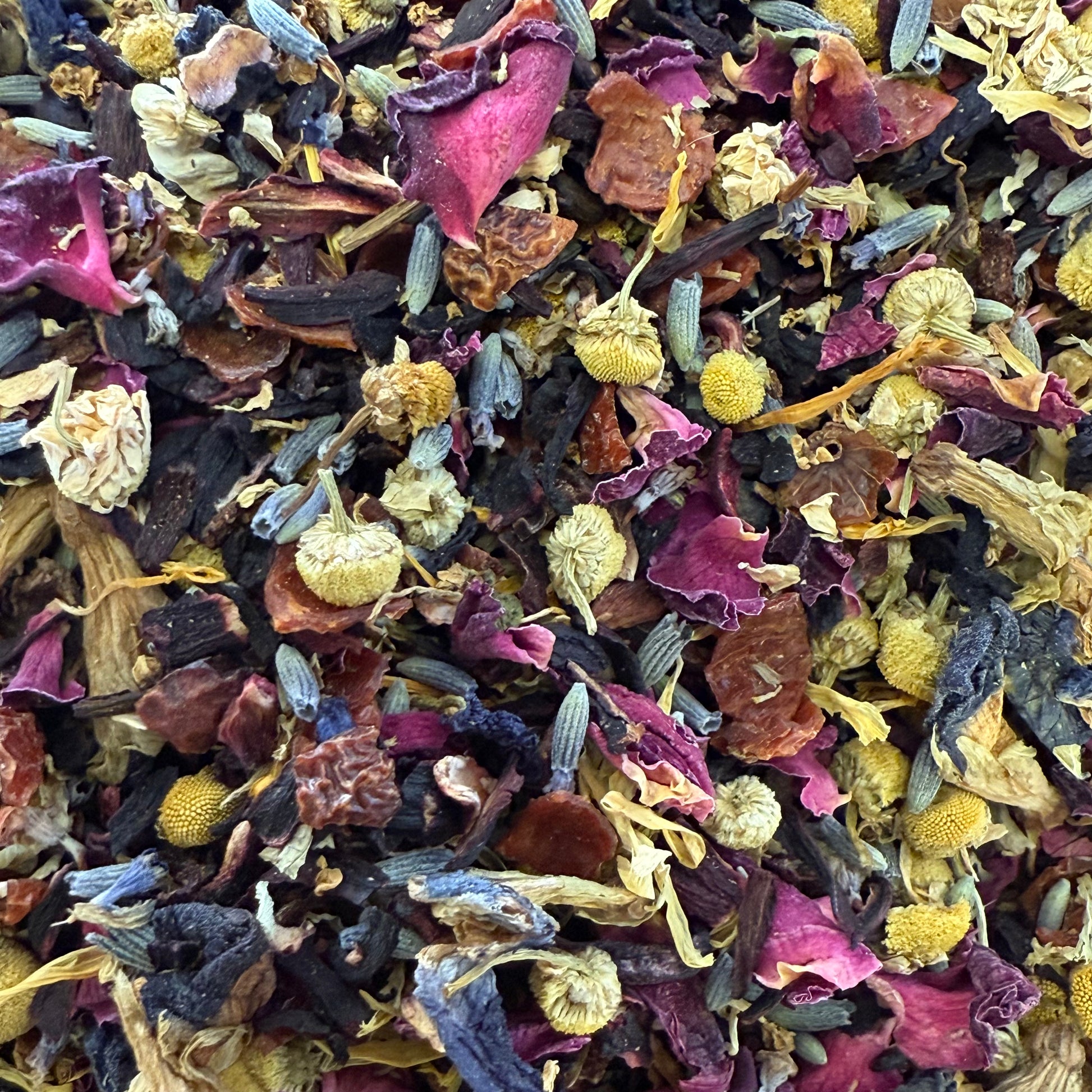 *Hibiscus, *Chamomile, *Rose Hips,